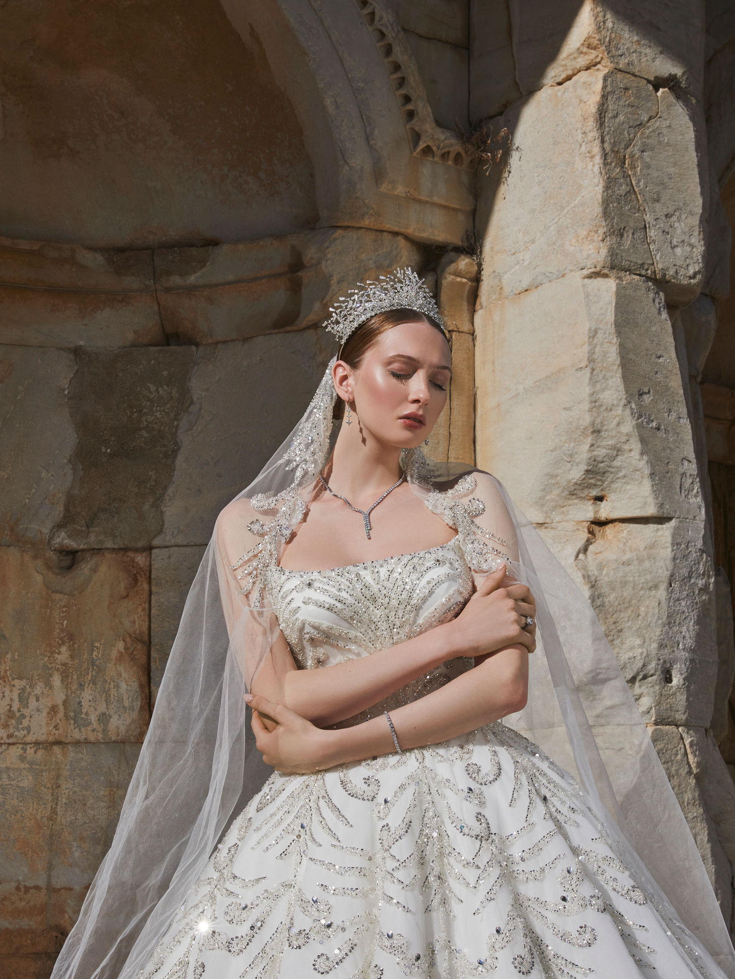Ephesus Dream: Ethereal Crystal-Adorned Bridal Gown