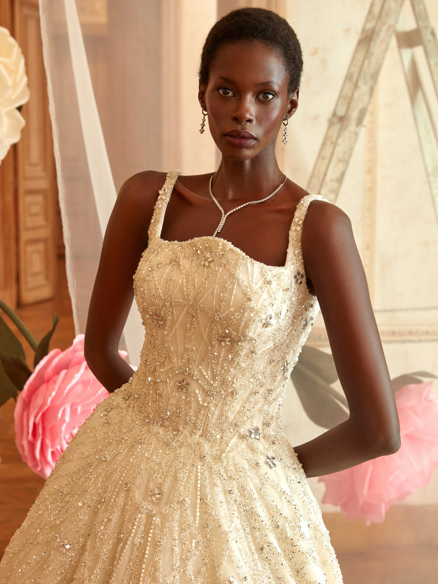 Be a regal bride in our regal ivory princess dress for dreamy brides. This ball gown, adorned with crystals and featuring a unique neckline, will make your wedding day dreams come true.