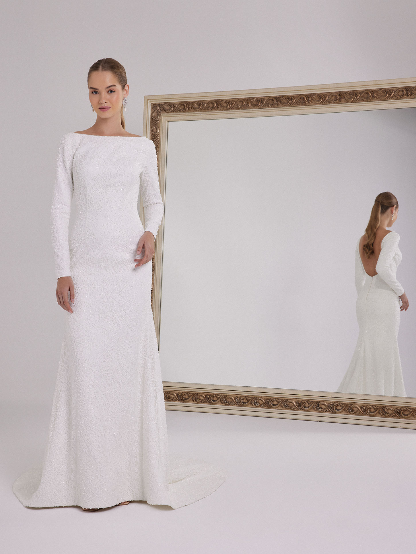 Long Sleeve Mermaid Wedding Dress with a Deep Back Decollete