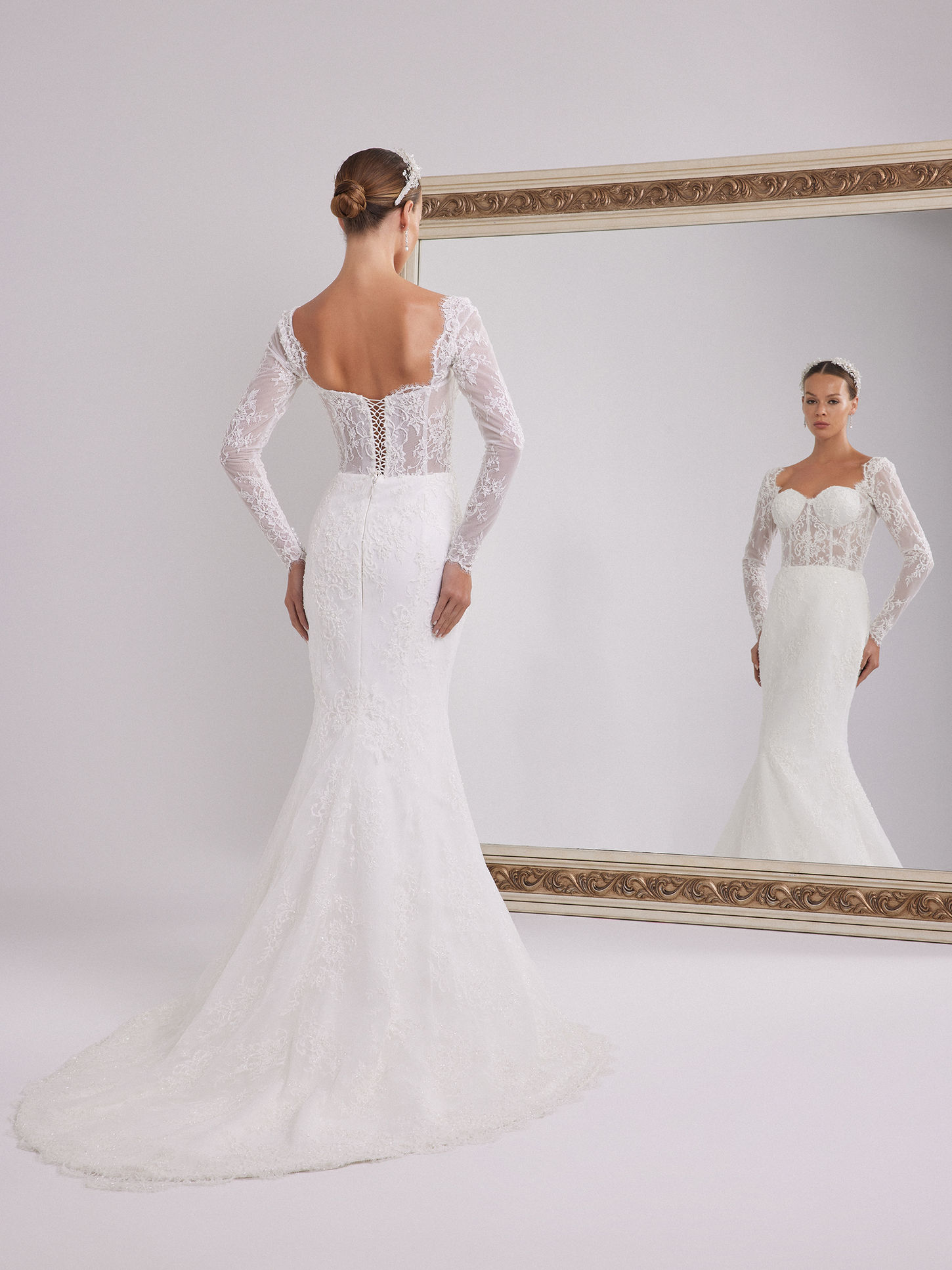 Timeless and Romantic Long-Sleeved Mermaid Wedding Gown